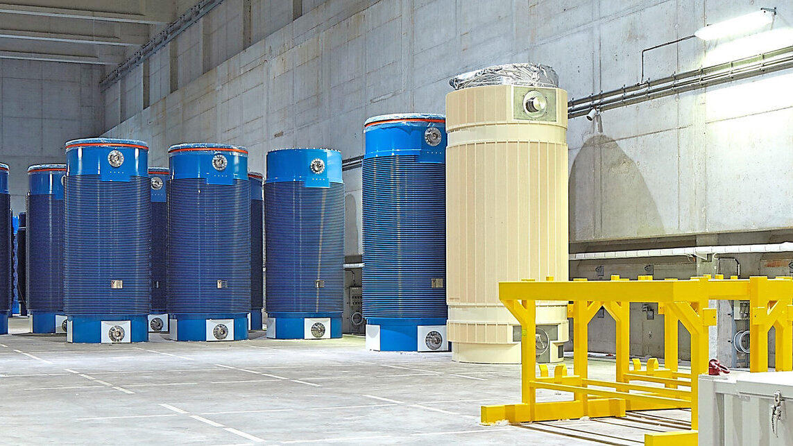Castorbehälter werden im Zwischenlager in Niederaichbach eingelagert