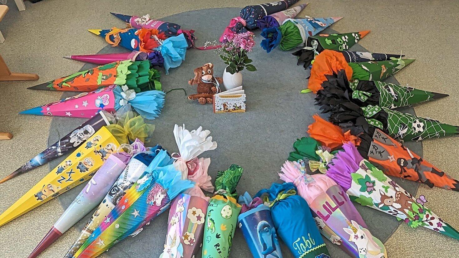 Die Schultüte steht bei der Einschulung im Mittelpunkt - so auch in der Grundschule Bruckberg-Gündlkofen am Schulstandort in Bruckberg.