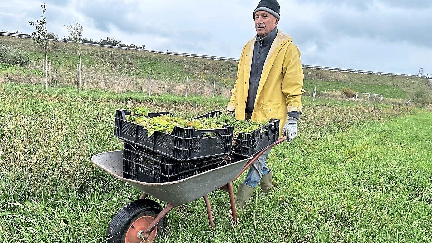 Mit Schubkarren werden die kleinen Pflänzchen an die vorgesehenen Stellen gebracht.