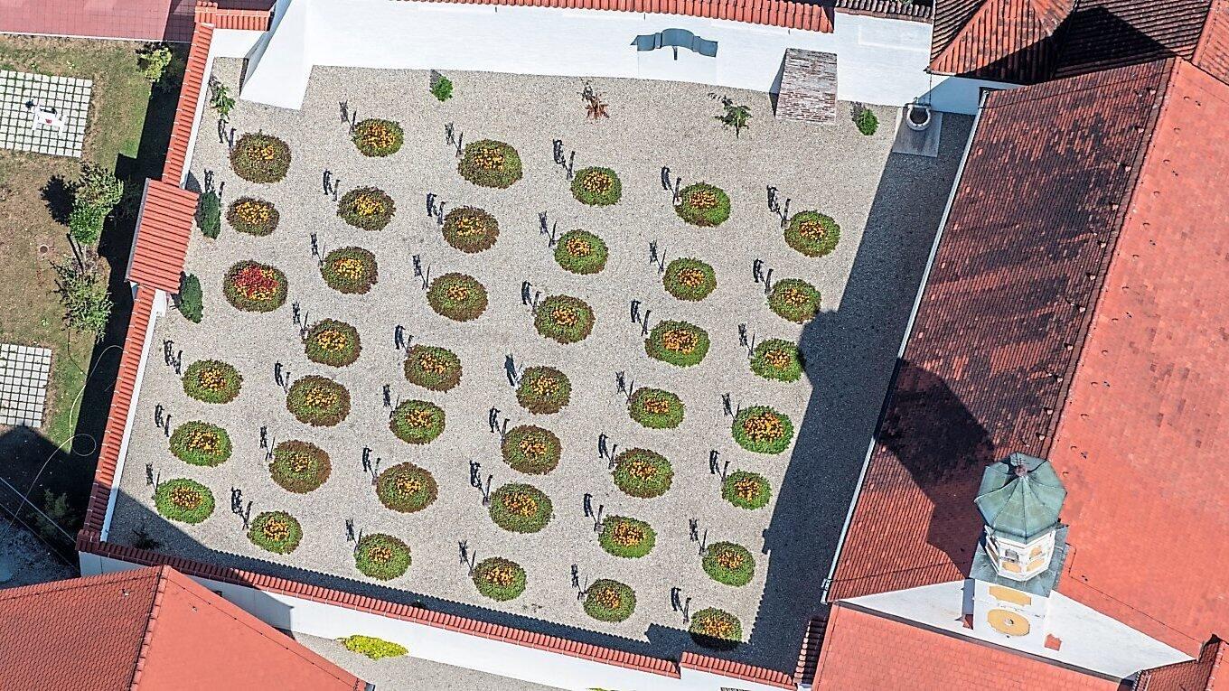 Auf dem fast sechs Hektar großen Klostergelände von Seligenthal gibt es einen ganz besonderen Ort, der weniger als gut ein halbes Prozent dieser Fläche ausmacht: den Friedhof.