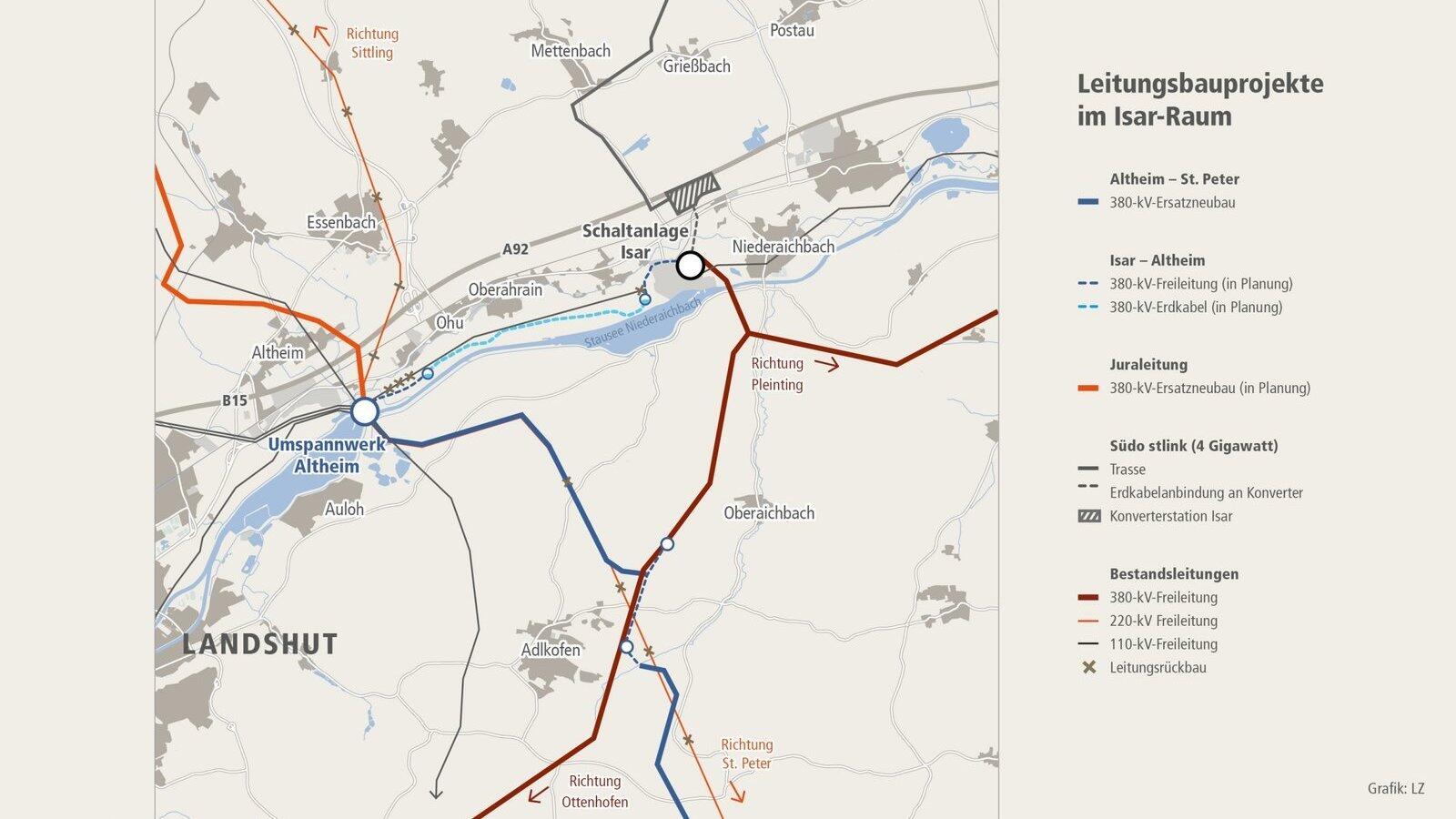 Die Region Landshut ist und bleibt ein wichtiger Knotenpunkt der Energieversorgung in Süddeutschland. Der Übertragungsnetzbetreiber Tennet stellt den Isarraum östlich von Landshut mit dem Südostlink und weiteren