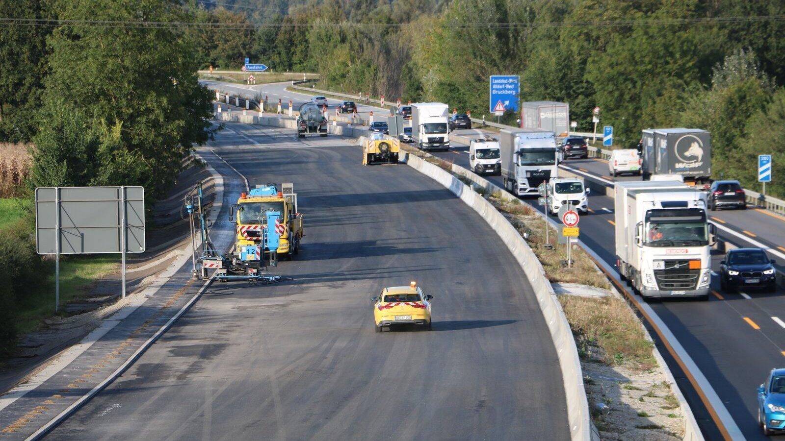 Der Autobahnverkehr zwischen Moosburg-Nord und Landshut-West rollt mittlerweile wieder vierspurig über die Fahrbahn in Richtung Deggendorf, während auf der Fahrbahn Richtung München letzte Arbeiten erledigt werden.