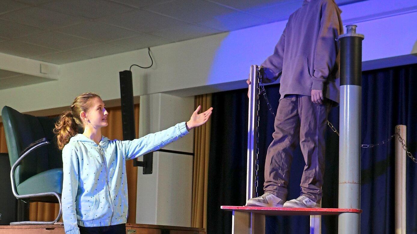 Die beiden Realschüler Karolina Piegsa und Sebastian Stadler stellten die Hauptprotagonisten, Anna und Robert, dar.