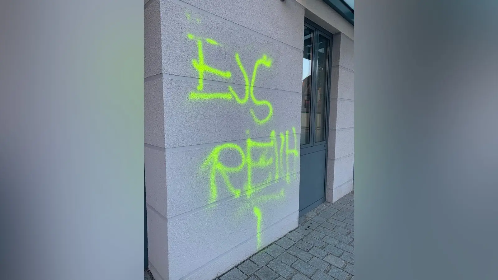 "Es reicht" prangt in gelben Buchstaben neben dem Eingang zum Rathaus und auch sonst überall da, wo der Unbekannte seinen Schriftzug zu Ende bringt. Für die Gemeinde sei das ärgerlich wegen Aufwand und Kosten, sagt Horsche. "Aber zum Glück nur Sachschaden", betont der Rathauschef.