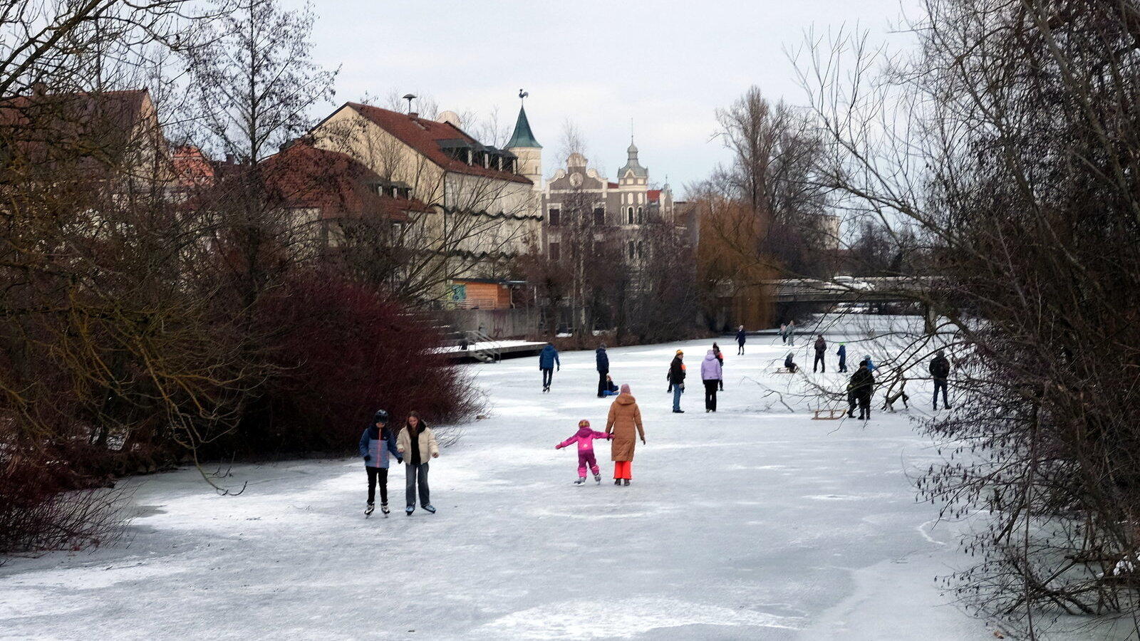 Das gibt es nicht jeden Winter zu sehen: Schlittschuhfahrer auf der Vils in Vilsibiburg.
