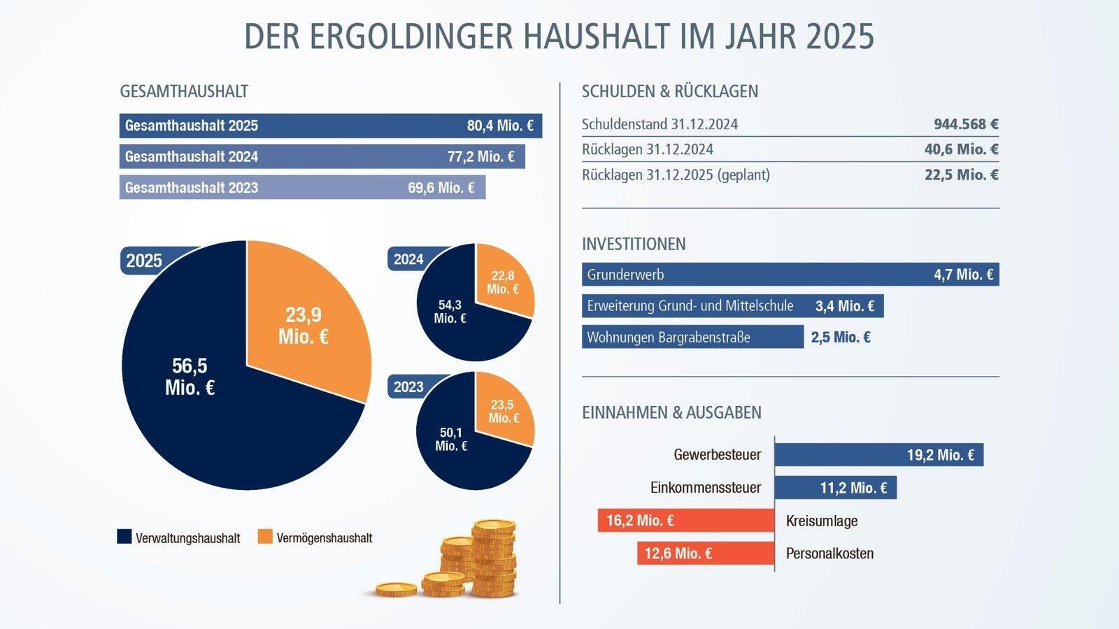 Der Marktgemeinderat hat einstimmig den Haushalt für das Jahr 2025 verabschiedet, das Gesamtvolumen liegt mit 80,4 Millionen Euro wieder auf Rekordniveau.