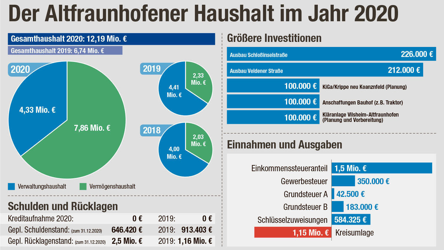 Der Gesamthaushalt der Gemeinde für 2020 umfasst 12,4 Millionen Euro und liegt damit deutlich über den Haushalten der vergangenen Jahre.