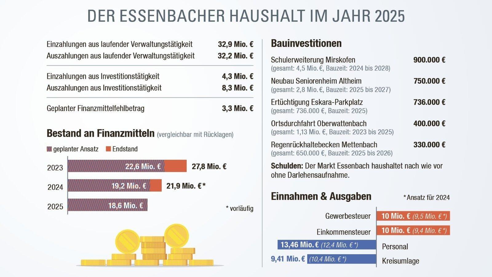 Haushalt: Essenbachs "Kontostand" schrumpft um 3,3 Millionen Euro
