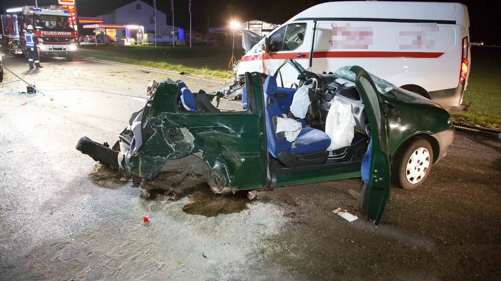 Die 30-Jährige konnte nicht mehr rechtzeitig bremsen und krachte in das Heck des Fiat Punto. Durch die Wucht des Aufpralls verlor die 48-Jährige die Kontrolle über den Fiat. Der Wagen geriet auf die Gegenfahrbahn, wo zur selben Zeit ein 22-jähriger Moosburger mit einem Kleinbus in Richtung Landshut unterwegs war. Der junge Mann hatte keine Chance mehr auszuweichen und krachte mit voller Wucht in die Beifahrerseite des Fiat Punto.
