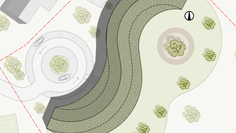 Stark geschwungen und mit mehreren überdachten Bereichen soll der neue Kindergarten gebaut werden.