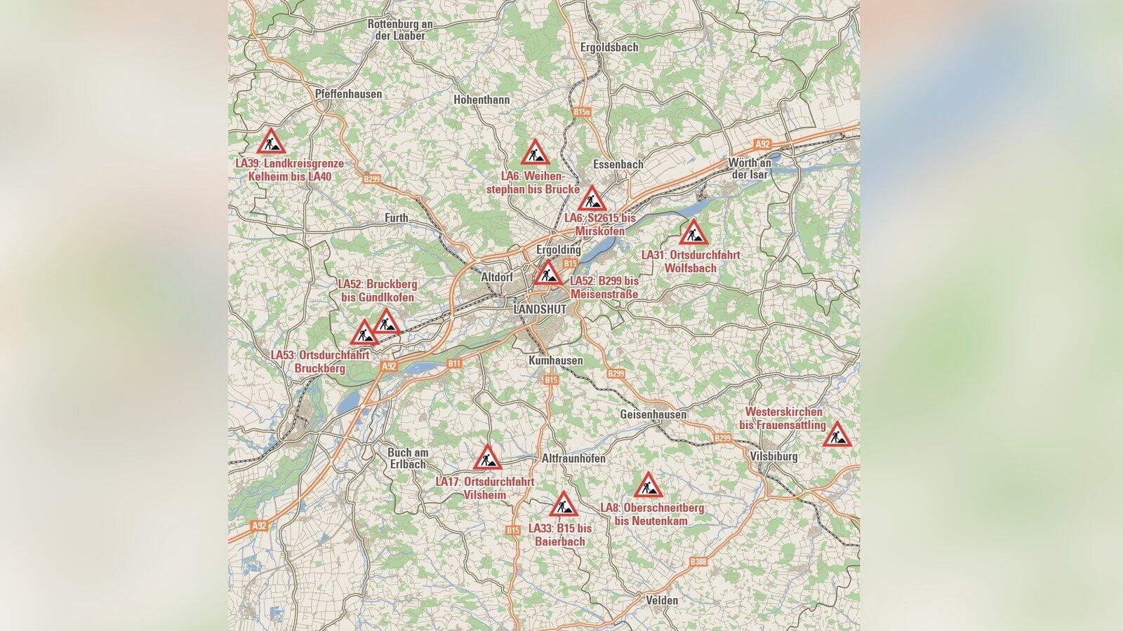 Die geplanten Deckenerneuerungsabschnitte auf den Kreisstraßen: Welche der Baumaßnahmen im kommenden Jahr tatsächlich umgesetzt werden, ist noch offen.