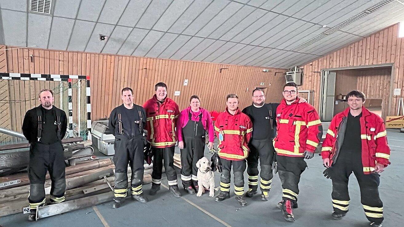 Ergoldings Bürgermeister Andreas Strauß (l.) mit den Helfern der örtlichen Feuerwehren.