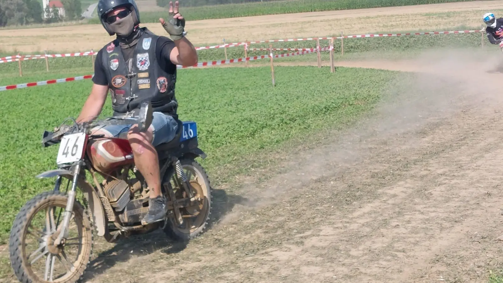 Das ferne Summen wird zum Knattern, als drei Gestalten, umwölkt von Staub, aus der Kurve am unteren Ackerrand heraufbiegen. Beim Überholkampf auf der Start- und Zielstrecke ziehen sie die Köpfe ein, die dampfige Luft zischt darüber hinweg. Hauptorganisator des 17. Mofarennens der Motorradfreunde Adlkofen und selbst Teilnehmer, Präsident Reinhard Selzer, surrt in Lederkutte vorbei am Vordermann in Schwarz und der Dame in überweiter, an den Knöcheln zusammengeklebter Jeans. Schon startet die nächste Runde. Nach sechs Stunden endet der Höhepunkt im Vereinskalender, Selzer jubelt zusammen mit Bruder Manfred auf den Siegerpaletten mit der Nummer drei.