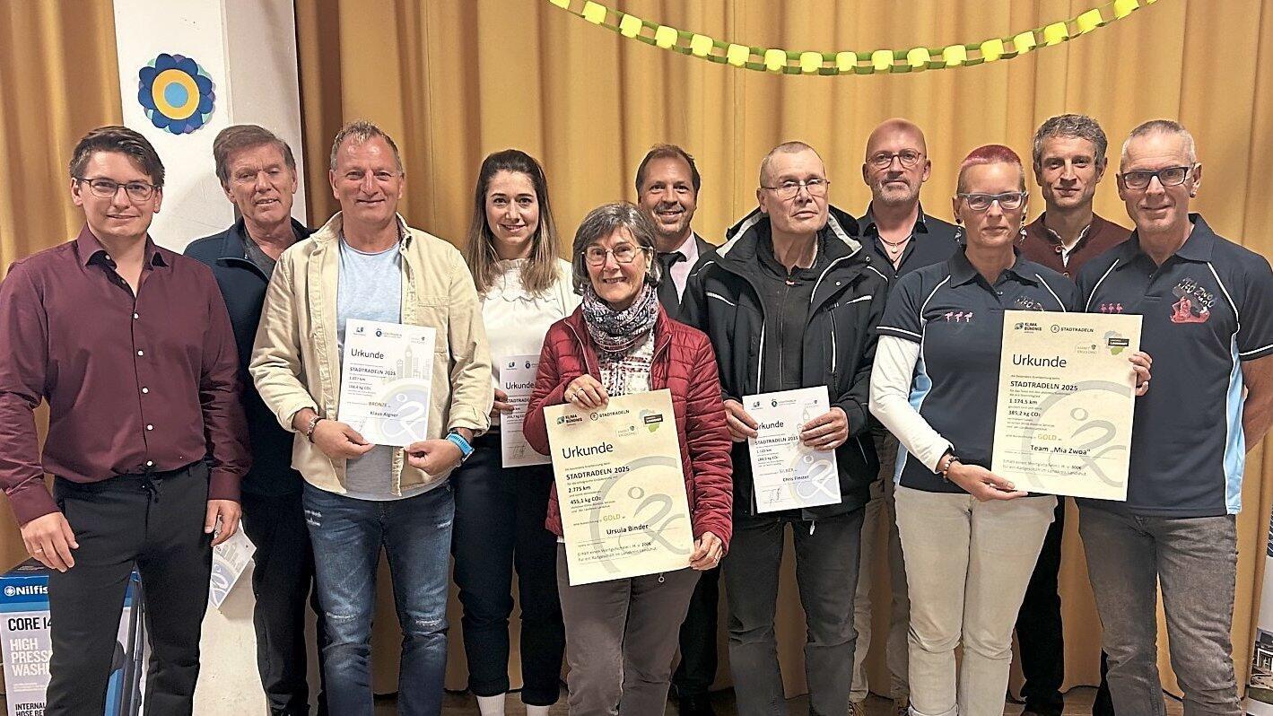 Die Gewinner des Stadtradelns 2025 im Landkreis Landshut mit Unterstützern und Organisatoren.