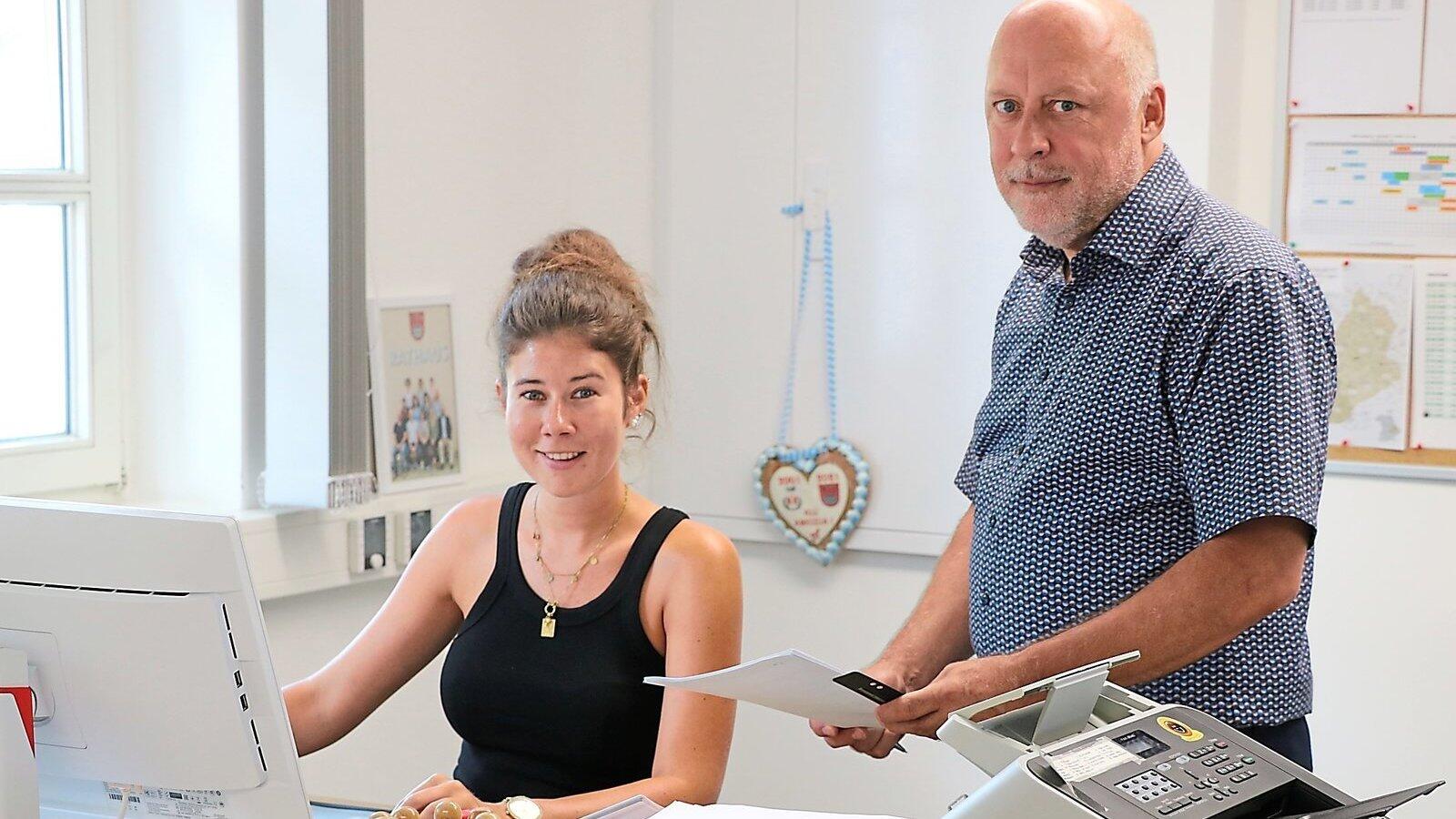 Noch im Vorzimmer, bald als Leiterin der Personalabteilung: Verwaltungs-Quereinsteigerin Katrin Wieselsberger (l.) mit Wörths Bürgermeister Stefan Scheibenzuber.