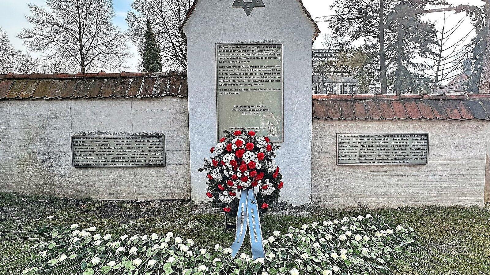 Am Gedenkort auf dem Achdorfer Friedhof wurde von zweitem Bürgermeister Thomas Haslinger und dem städtischen Kulturchef Benedikt Schramm ein Kranz niedergelegt. Außerdem wurde von den Anwesenden in Erinnerung an die 83 jüdischen Häftlinge, die im KZ-Außenlager Landshut ihr Leben ließen, jeweils mit einer weißen Rose gedacht.