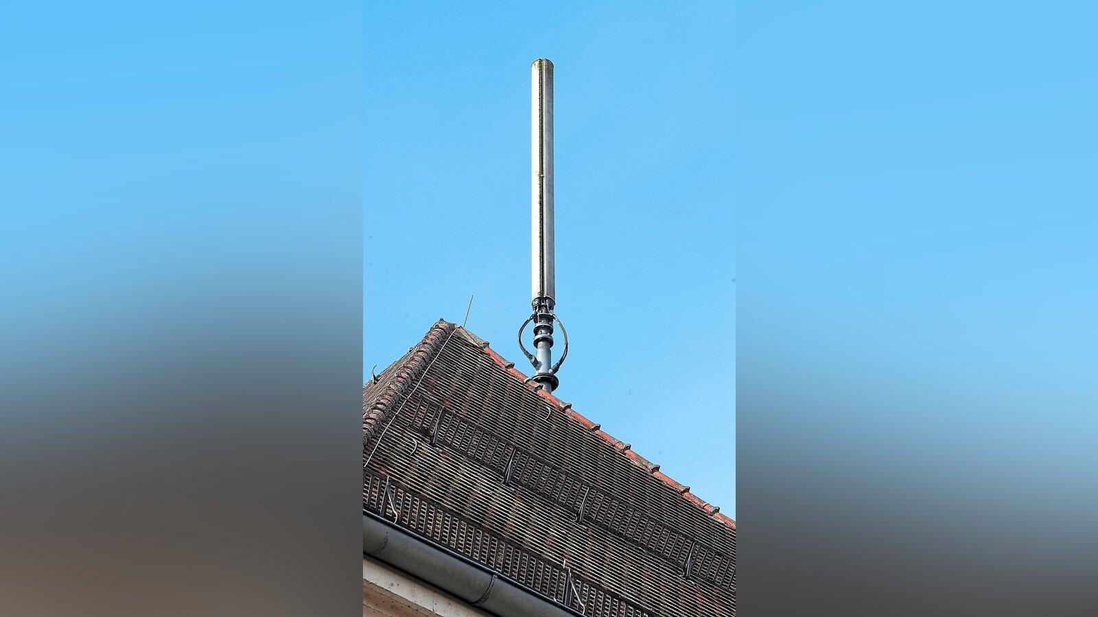 Über die Stadt sind Mobilfunk-Masten von verschiedenen Anbietern verteilt - wie etwa hier im Bild auf dem alten Postgebäude. Immer mehr Standorte werden jetzt auf 5G aufgerüstet oder es werden neue aufgestellt.