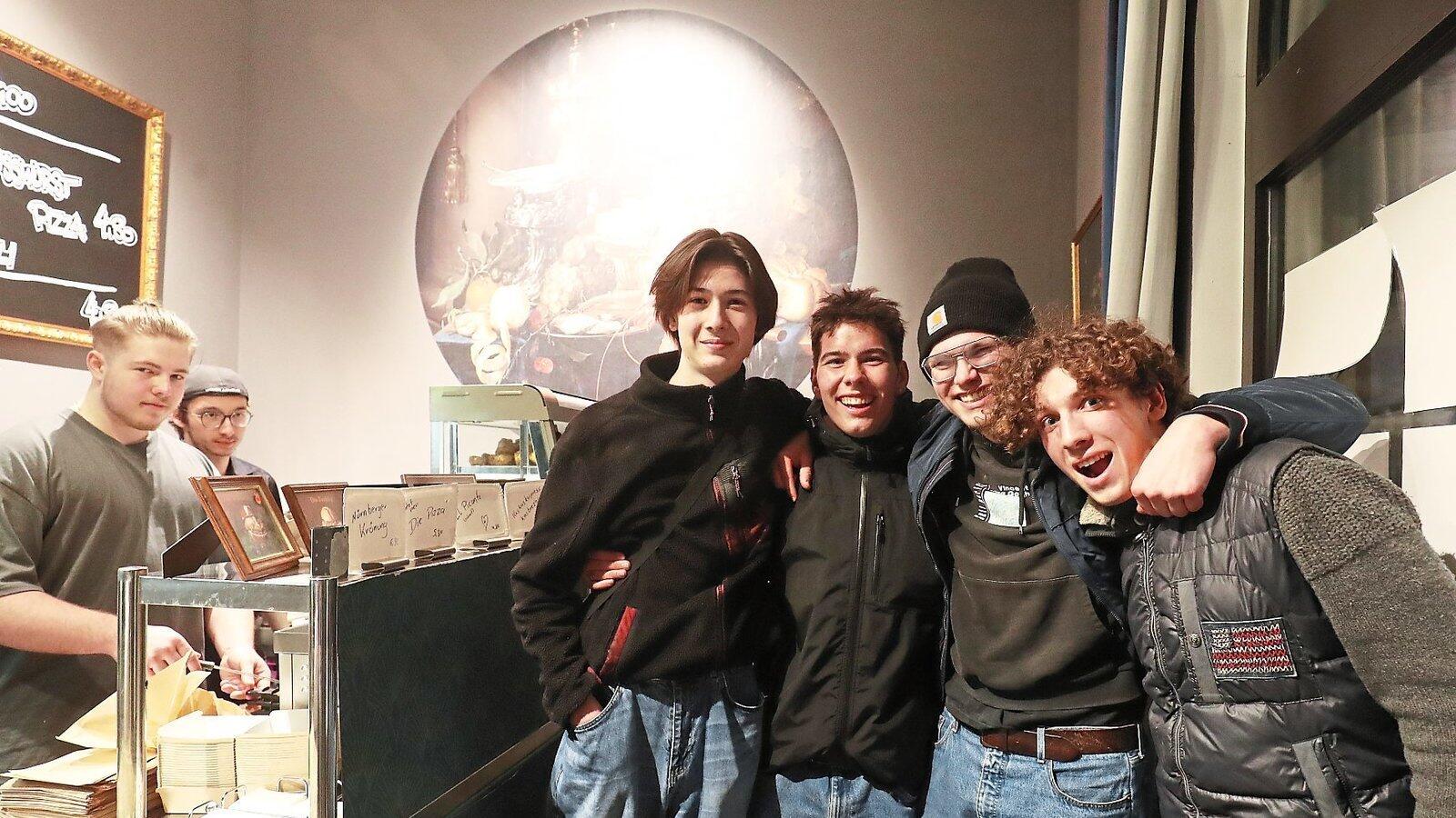 Wirklich mondän geht es bei "Karls Leberkas" nur an der Wand zu: Unter dem Bild eines riesigen Hummers bringen Ferdi (vorne) und Daniel die Leberkassemmel an den Kunden. Sie machen den Job schon seit eineinhalb Jahren - mittlerweile läuft die Arbeit völlig automatisch.