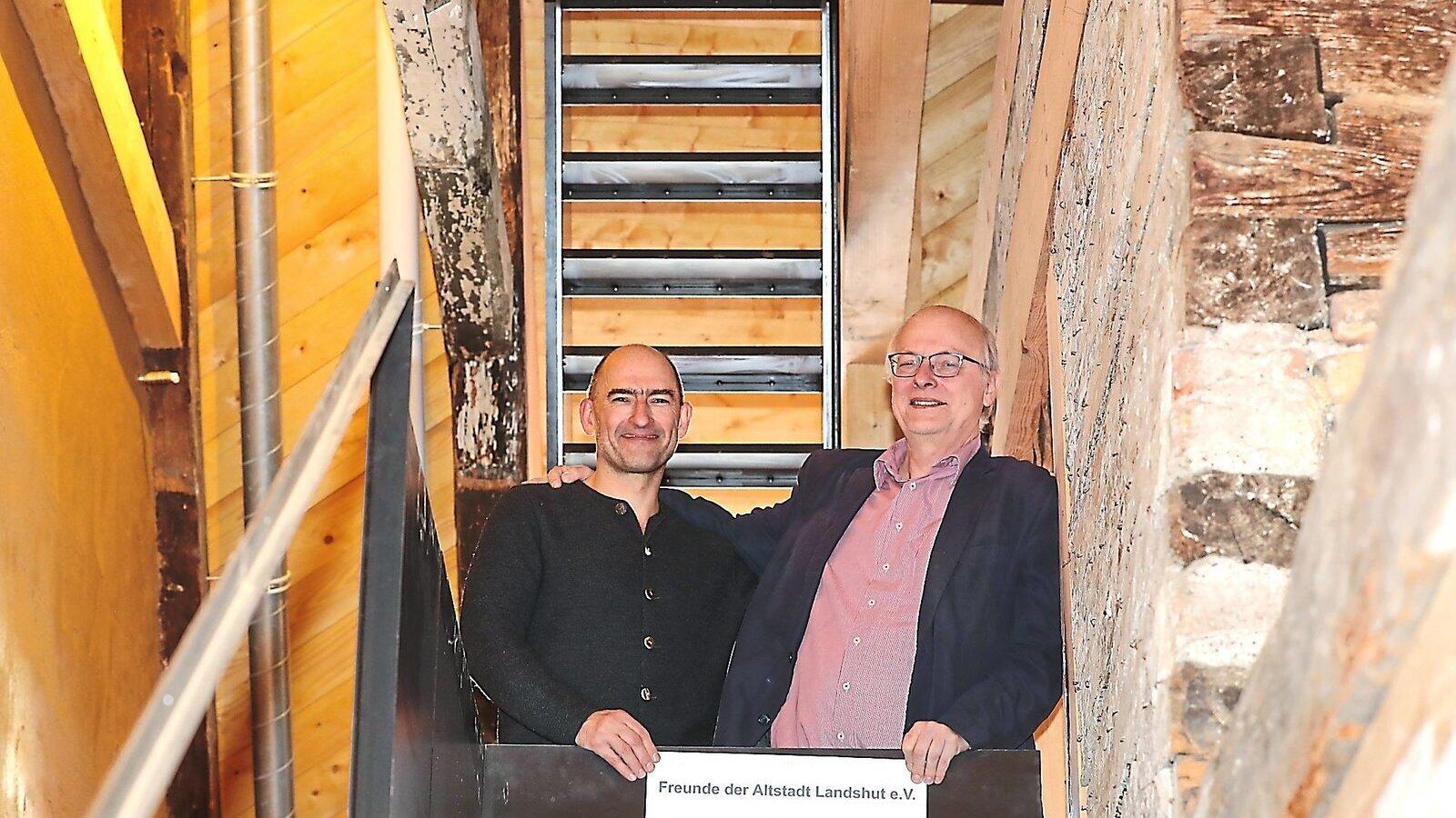 Hausherr Markus Stenger (links) und Josef Wiesmüller, Vorsitzender der Altstadtfreunde kooperieren bei der Belebung des Denkmals.