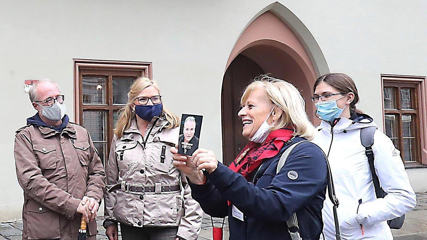 Da hinten im Rathaus sitzt er manchmal, der Herr Wepper, und lernt Text", erzählt Gästeführerin Martha Klessinger am Freitagnachmittag.