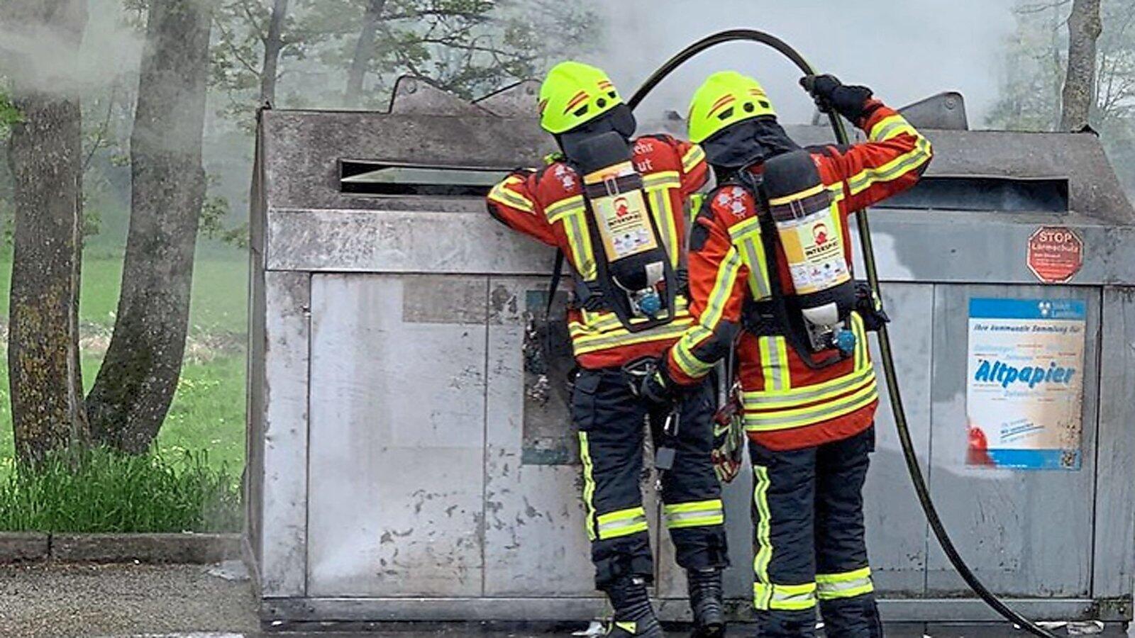 Die Feuerwehr löschte die Brände mit Wasser und Schwerschaum. Die Polizei sucht währendessen nach der Identität des "Feuerteufels" - unter anderem mit einem Helikopter und zivilen Polizisten.