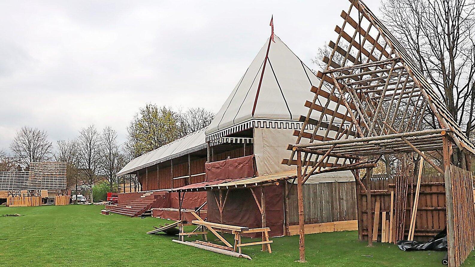 Die Anforderungen an die mittelalterliche Kulisse? Hoch. Das Wetter? In den vergangenen Wochen oft zu greislich. Der Boden auf dem sie stehen soll? Nach Regen manchmal zu rutschig.