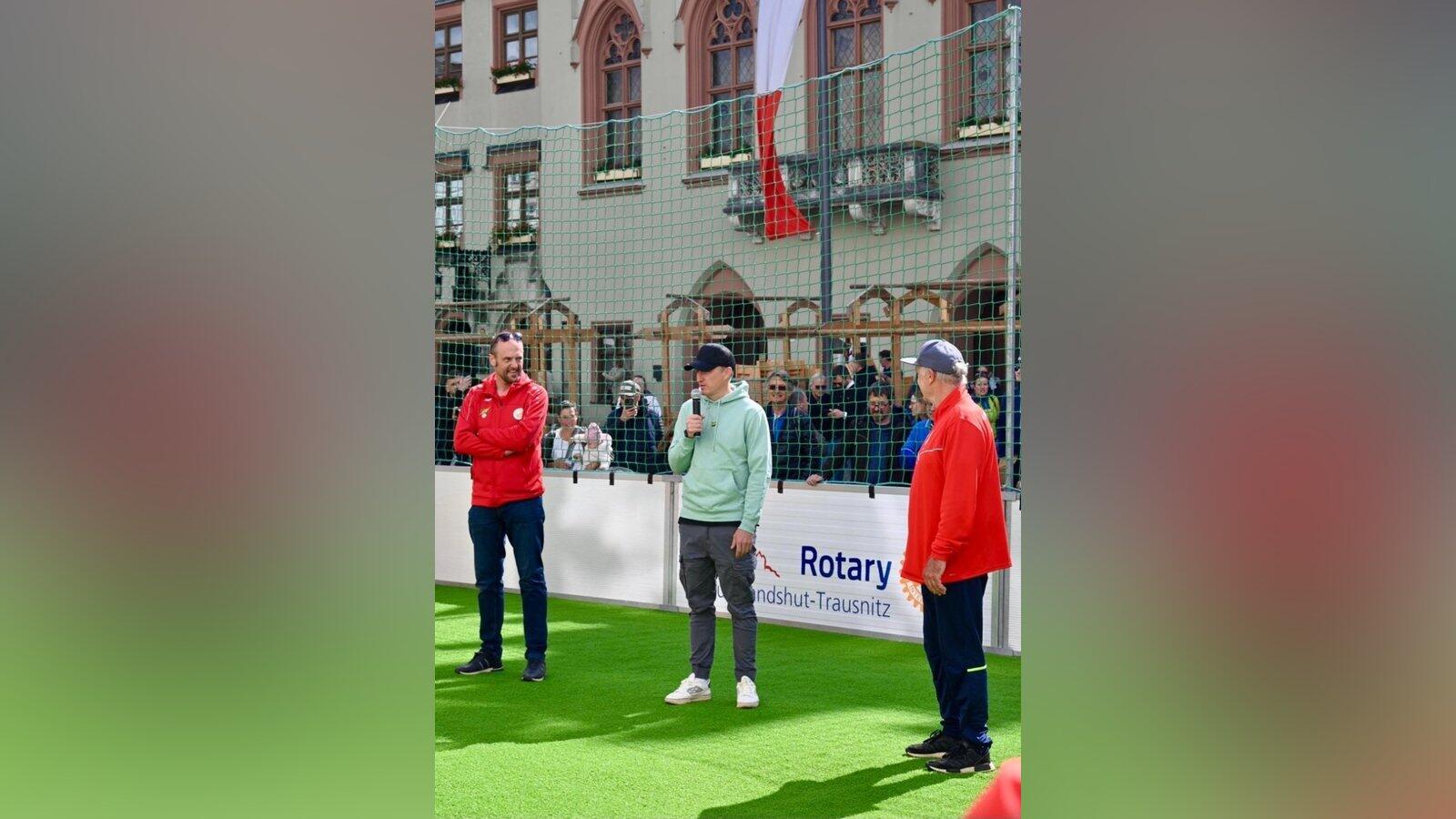 Tobias Schweinsteiger (Mitte) eröffnete den vierten Rotary Landshut-Trausnitz-Cup in der Fußgängerzone.