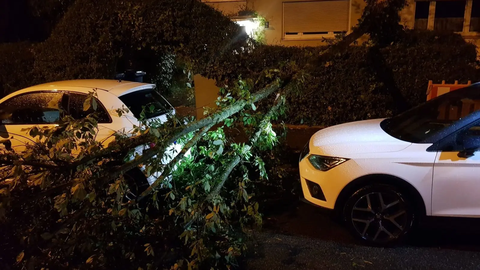 Durch umstürzende Bäume wurden in der Bachstraße, in der Savignystraße und in der Watzmannstraße auch geparkte Autos beschädigt. Am Englbergweg stürzte ein großes Baumteil an ein Wohnhaus, woraufhin das abgebrochene Baumteil sowie der beschädigte restliche Baum vorsichtig und Stück für Stück zerlegt werden mussten.