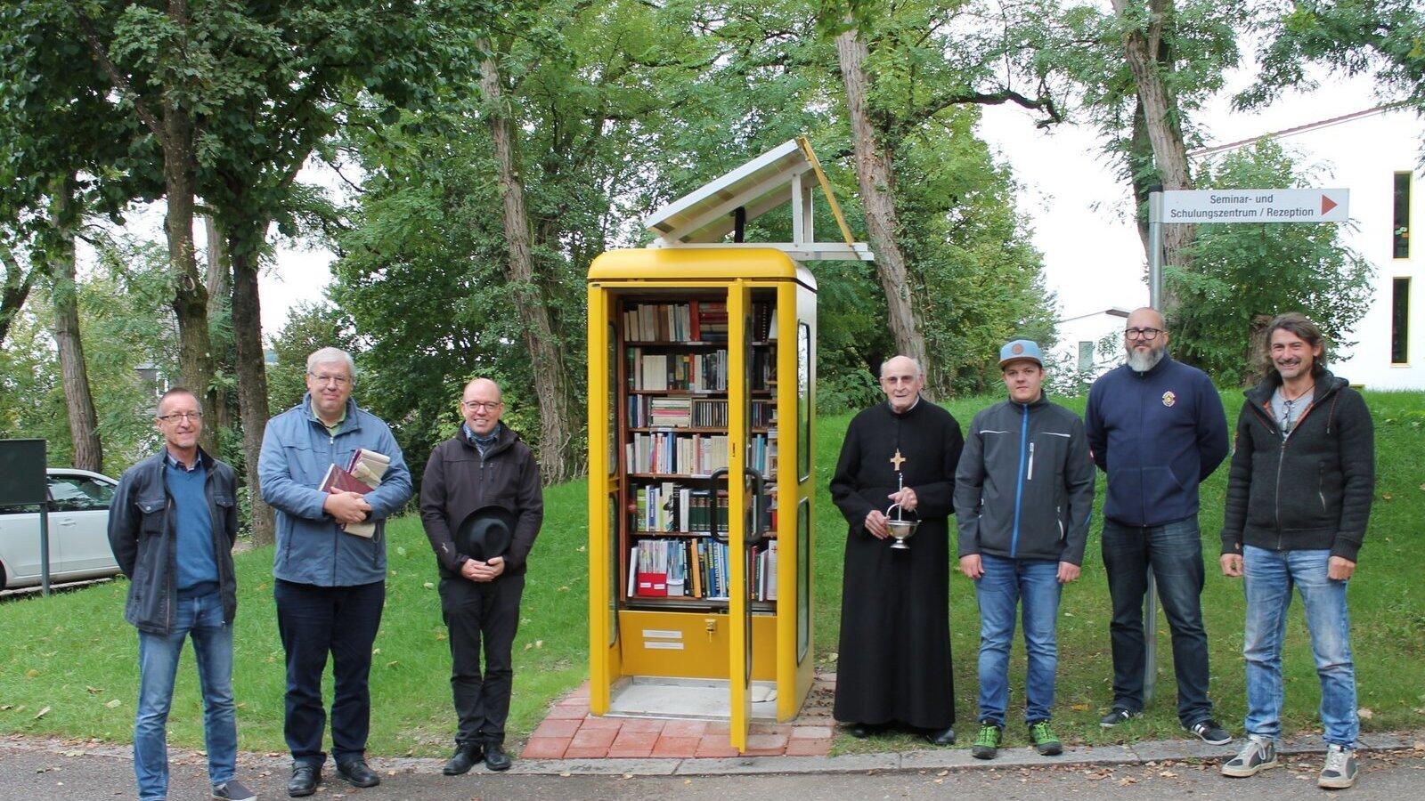 Kein Handy-Unterstellhäuschen sondern eine kleine Bücherei beinhaltet die alte Telefonzelle.