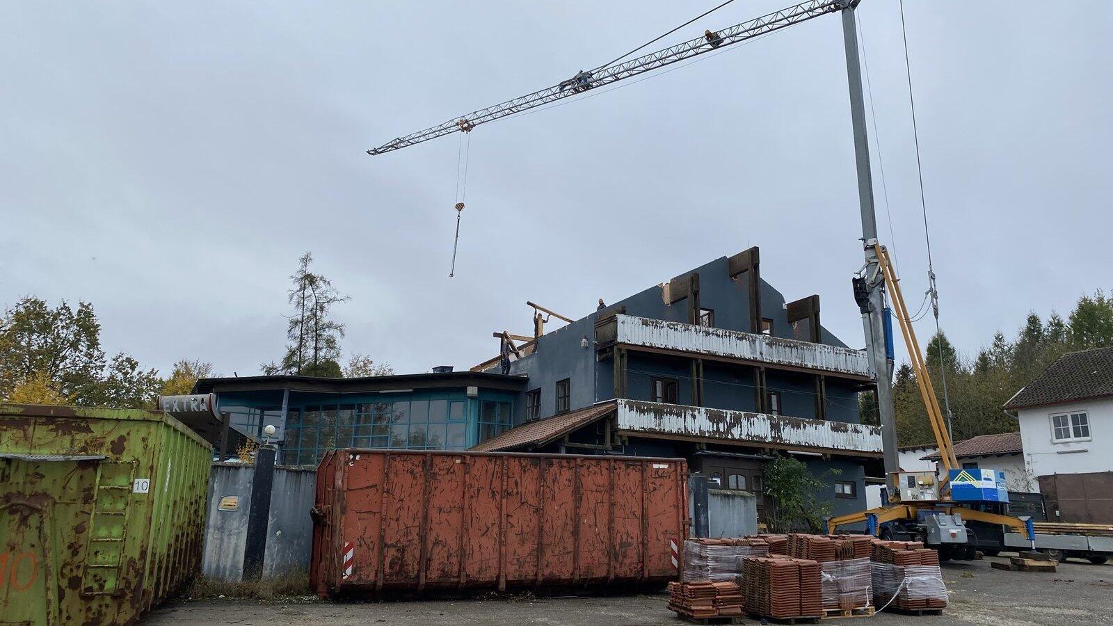 Das Dach fehlt bereits: Bald wird vom alten Extra nicht mehr viel übrig sein. Immerhin die Leimbinder dürfen an anderer Stelle weitertragen und auch ein paar Einrichtungsgegenstände werden weiter genutzt. Ansonsten bleibt die Erinnerung.