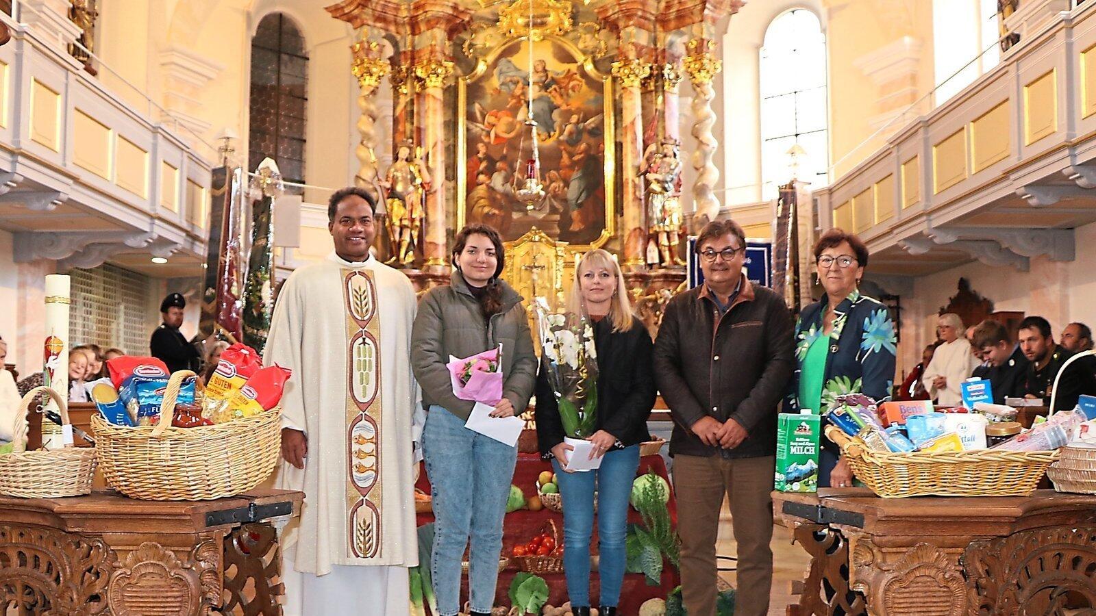Große Freude empfanden (v.li.) Pfarrer Saju Thomas, Petra Sanktjohanser, Verena Gerstl, Lauri Seidl, Angelika Aiwanger mit den zahlreichen Gottesdienstbesuchern.