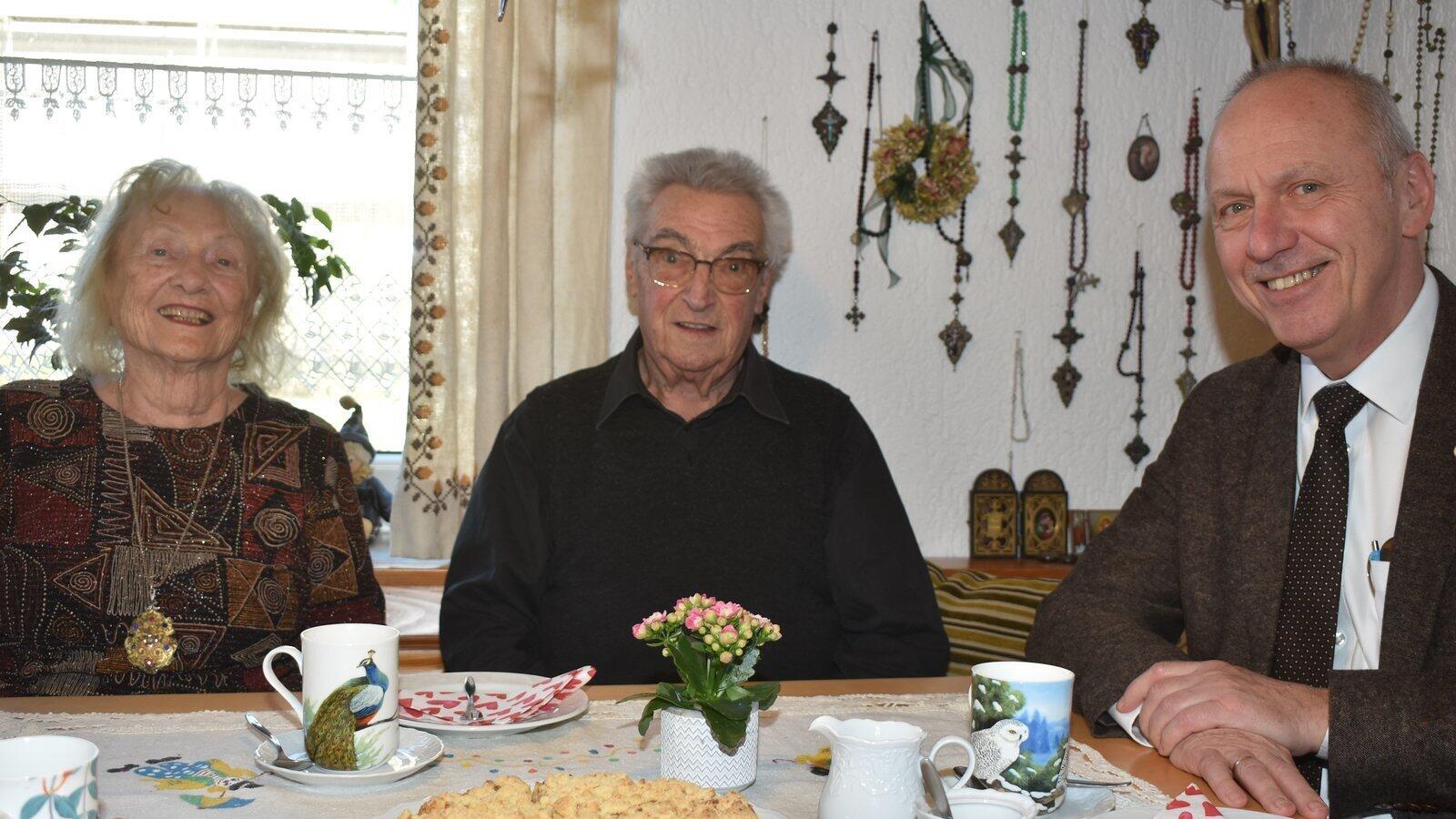 Bei Kaffee und Streuselkuchen konnte man mit dem Jubilar bestens plaudern: Gisela und Herwart Radspieler zusammen mit Bürgermeister Josef Reff (von links).