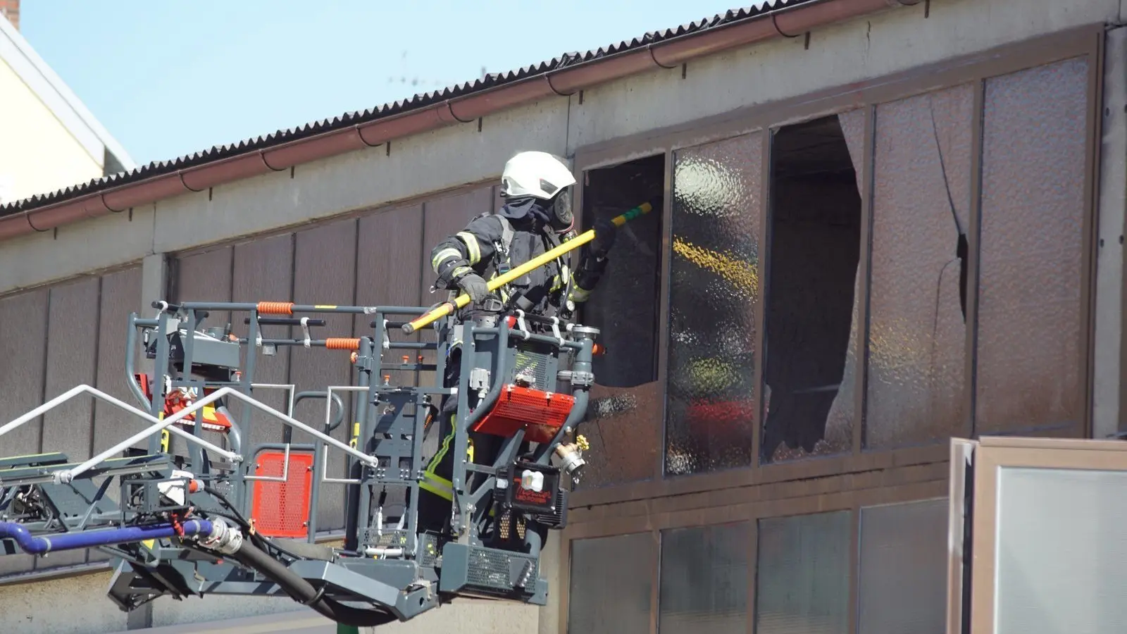 Dank des Einsatzes der Firmenmitarbeiter sei ein großer Teil des Feuers bereits mit Feuerlöschern eingedämmt gewesen. Feuerwehrleute hätten dann die Reste gelöscht. Ausgebrochen sei der Brand wohl bei Arbeiten an einer Werkbank. Um auf Nummer sicherzugehen, kontrollierte die Feuerwehr Grimm zufolge angrenzende Räume und das Dach auf mögliche versteckte Brandherde. „Zum Glück blieben sie aber ohne Feststellung.“ Ein Feuerwehrmann entfernte von einer Drehleiter der Geisenhausener Wehr aus mit einem Einreißhaken ein Stück der Dachisolierung.