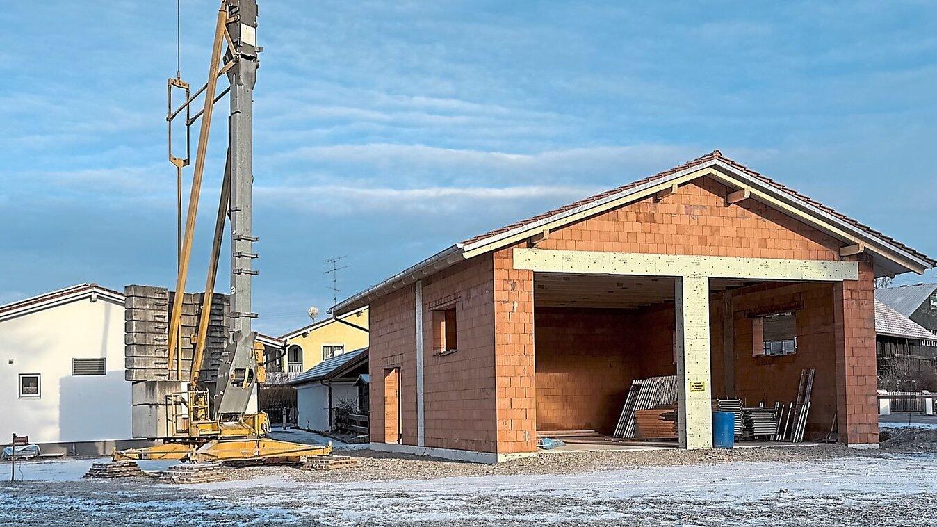 Die Fahrzeughalle der Feuerwehr Hinterskirchen. Im Dezember konnte dort der Dachstuhl aufgestellt und das Dach gedeckt werden.