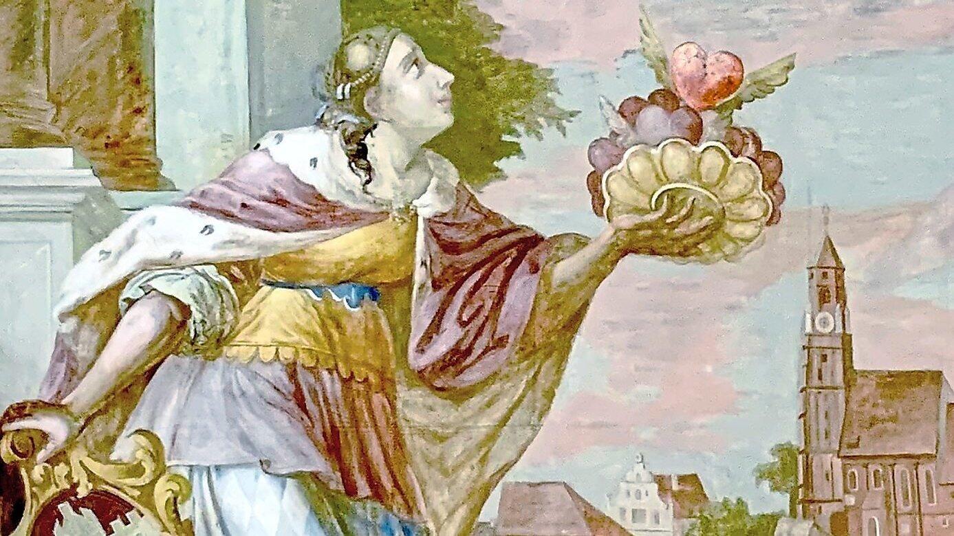 Das Titelbild zur Ausstellung ist dem Deckenfresko in der ehemaligen Wallfahrtskirche Sankt Theobald entnommen (Johann Philipp Hauser, 1724). Es bietet den Blick auf Geisenhausen.