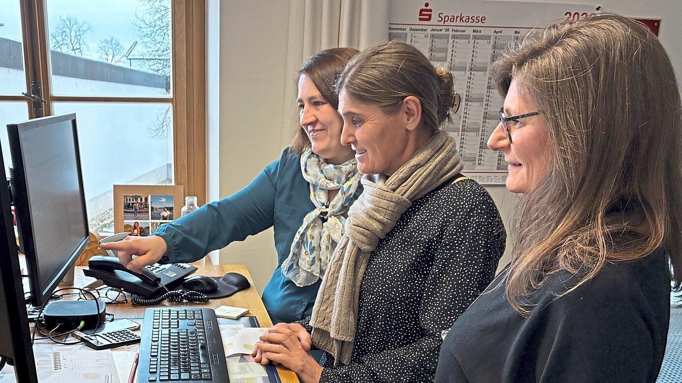 Susanne Gruber (v.li.), Rosmarie Röhrl und Katrin Langenfeld sind in den letzten Vorbereitungen für den Druck des neuen Vhs-Programm-Hefts.