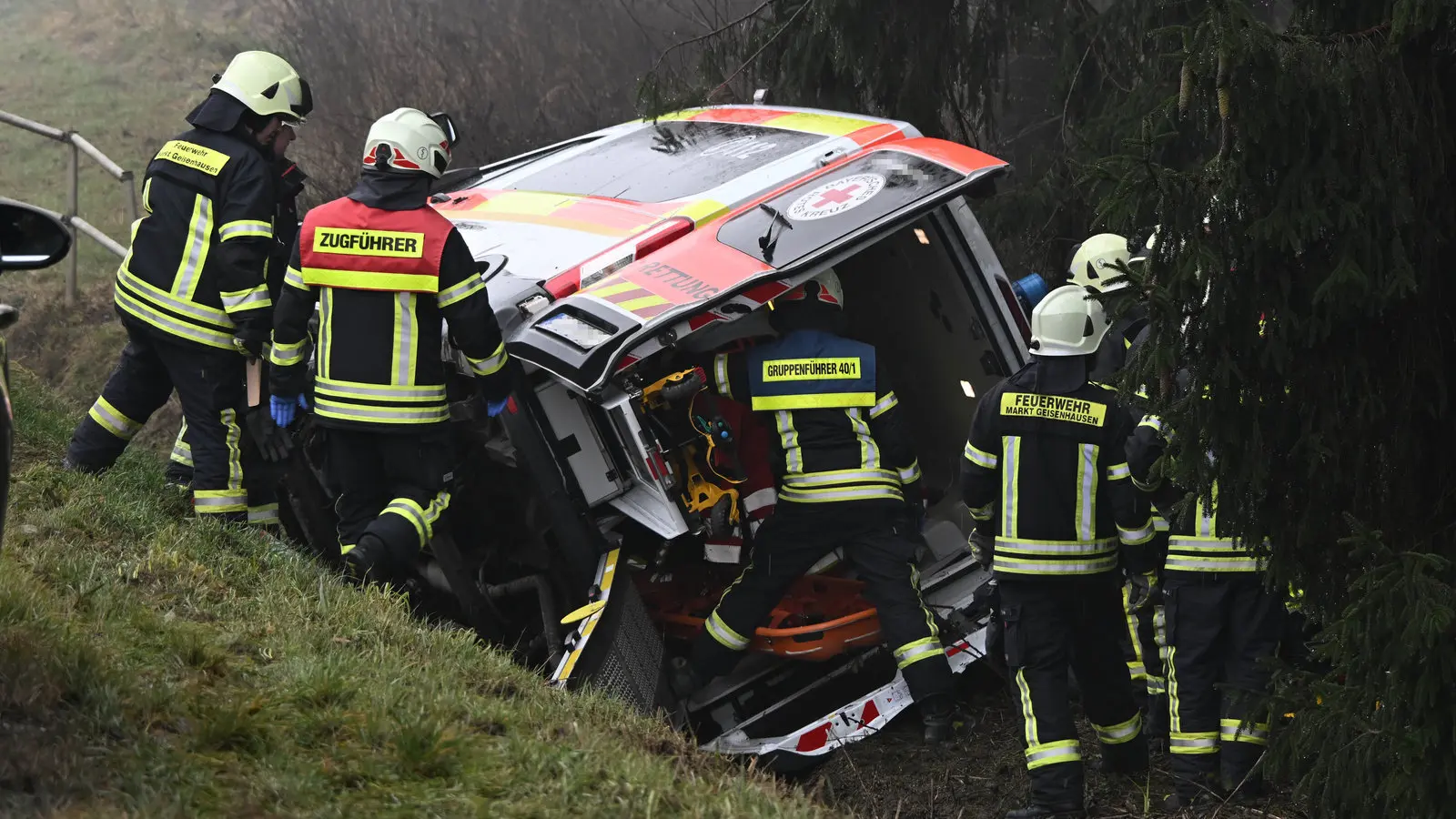 Rettungswagen kommt von Straße nahe Vilsbiburg ab - vier Verletzte