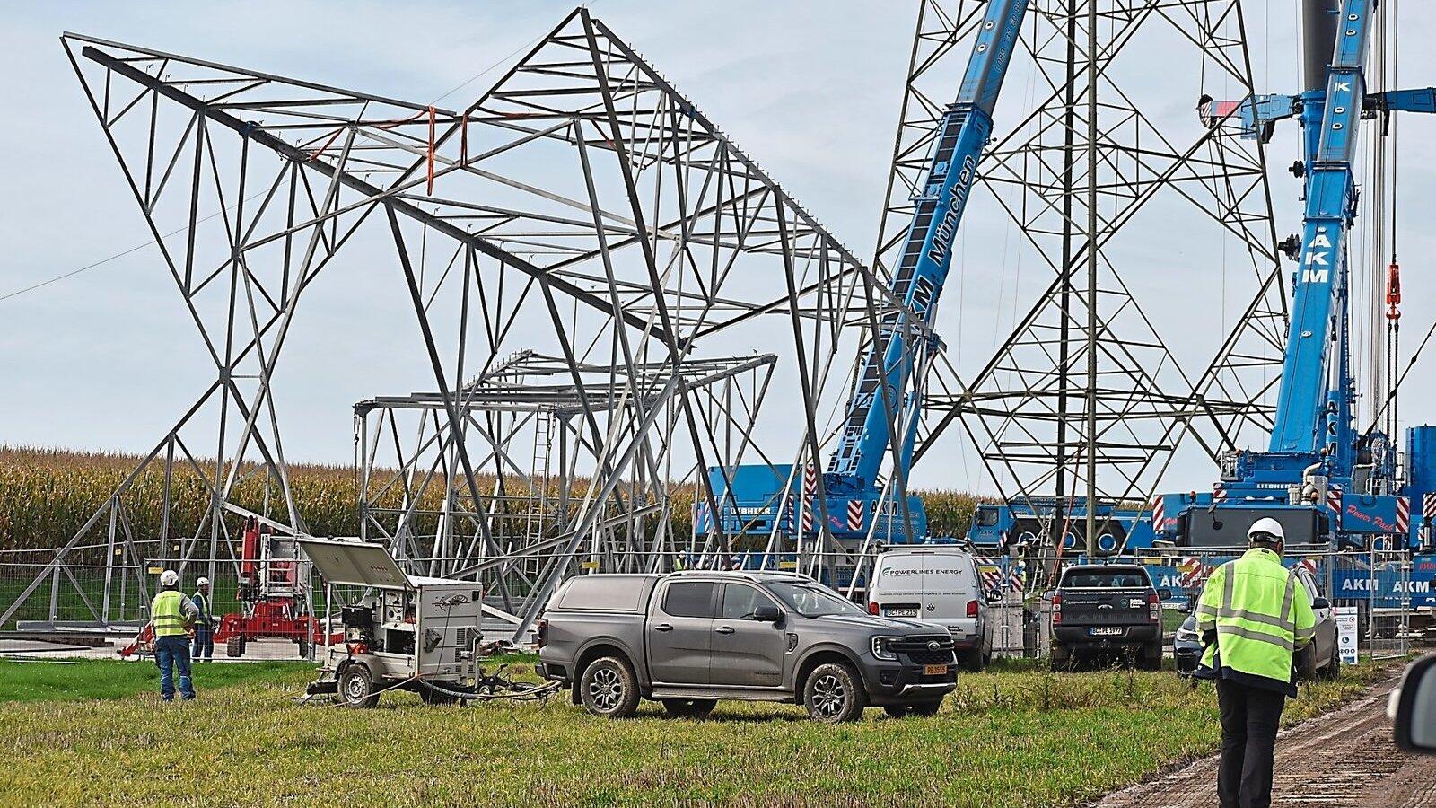 Nahe dem Einödhof Albanstetten an der Kreisstraße LA21 nach Götzdorf wurde nach ausführlichen Vorbereitungsarbeiten im Laufe des Dienstags ein Hochspannung-Strommast vom Netzbetreiber Tennet höher gesetzt.