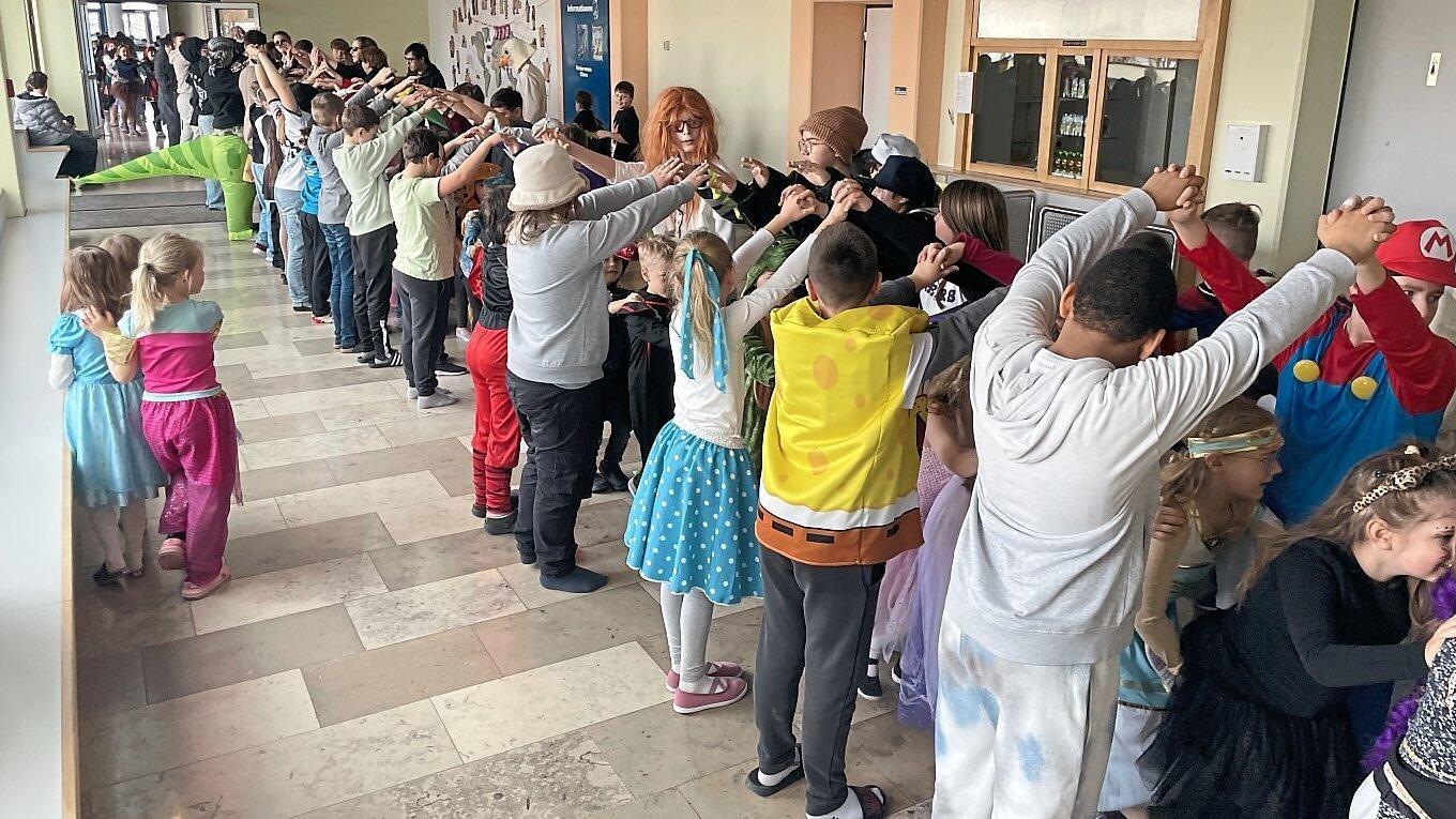 In knallbunten Latzhosen übernahmen die Lehrkräfte der Grund- und Mittelschule am Unsinnigen Donnerstag das Schulhaus und verwandelten es kurzerhand in eine fröhliche Baustelle.