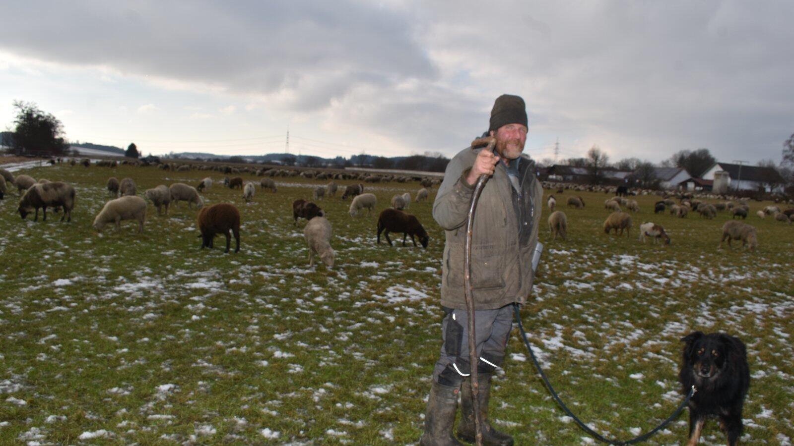 Mit 550 Schafen und Ziegen ist Bernhard Fischer unterwegs, dazu vier Hunden und zehn Eseln.