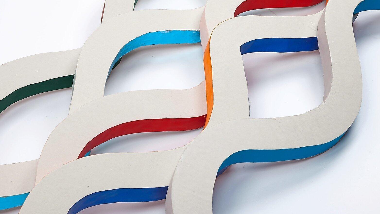 Diese Stränge hat Wolfgang Zeilbeck aus Pappe mit Wabenkern herausgearbeitet, mit Spezialpapier verschlossen und mit Acrylfarbe bemalt.