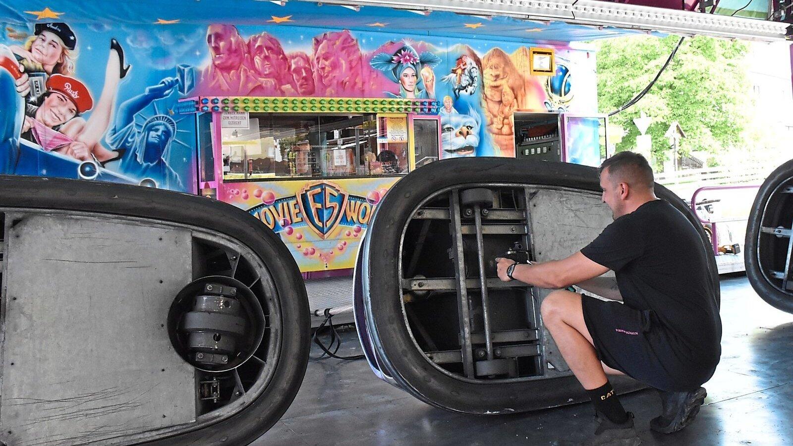 Am Vilsbiburger Volksfestplatz wird bereits seit einigen Tagen fleißig gewerkelt. Auch Mike Sonntag und sein Team sind beschäftigt: Innerhalb von drei Tagen bauen sie den Autoscooter auf, der während des Volksfests