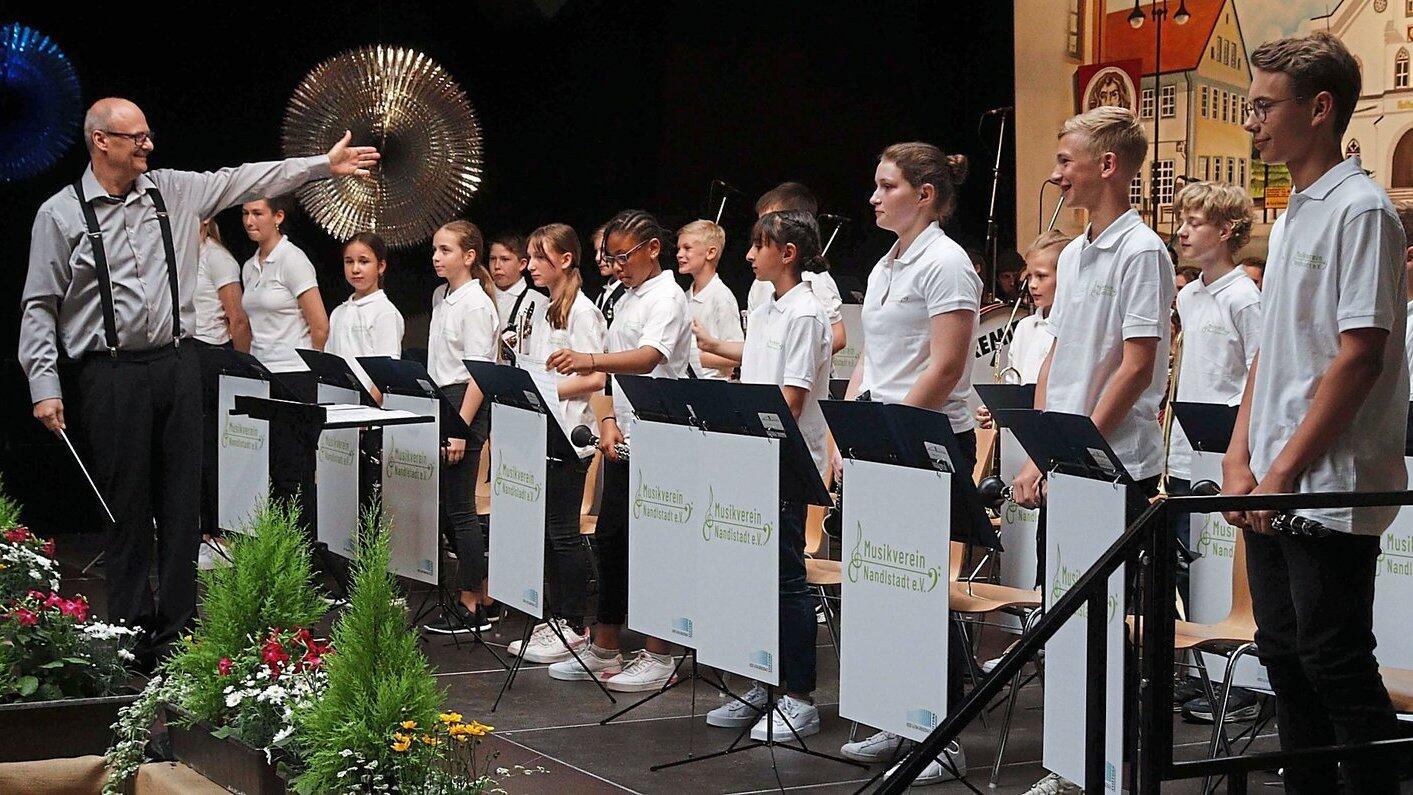 Bildet eine der Keimzellen der geplanten Marktkapelle Nandlstadt: Die Jugend, hier bei ihrem erfolgreichen Auftritt mit Helmut Schranner an der Spitze.