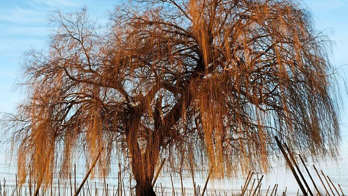 Die etwa 100 Jahre alte Weide bei Haslach eröffnet die Motivreihe im Baum- und Geschichtenkalender: Die Weide ist das Januar-Motiv.