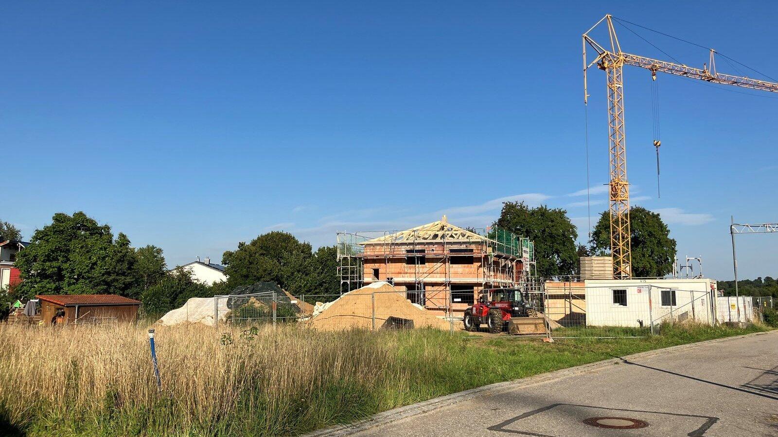 An der Josef-Eberwein-Straße wird bereits fleißig gebaut. Das Grundstück mit der späteren Hausnummer 18, hier links im Bild, wird der Markt Au jetzt online versteigern. Das Mindestgebot liegt in diesem Fall bei einem Quadratmeterpreis von 630 Euro.