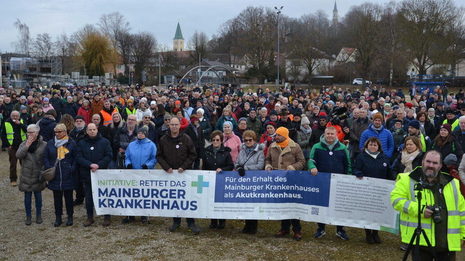 Etwa 2.750 Bürger aus Mainburg und der umliegenden Region versammelten sich auf der Schöllwiese in Sichtweite der Innenstadt, um für den Erhalt der Klinik am Ort als Akutkrankenhaus mit stationärer Notaufnahme zu demonstrieren.