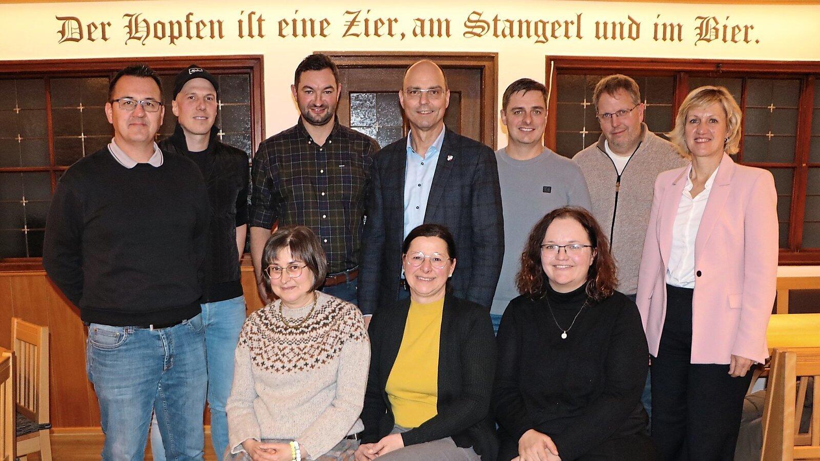 Die CSU/Bürgerforum-Kandidatinnen und Kandidaten mit Bürgermeister Franz Högl (hinten Mitte), der sich wieder um das Amt bemüht. In den Händen von CSU-Ortsvorsitzender Petra Högl (rechts) lag die Wahlleitung.