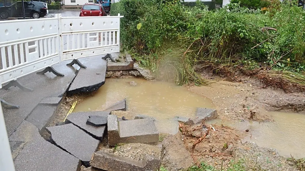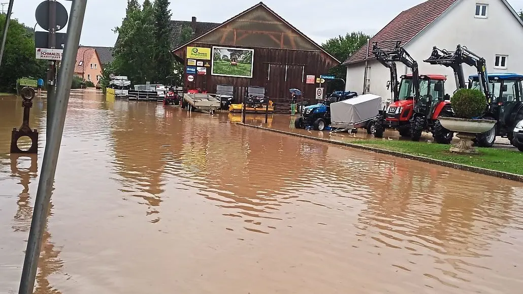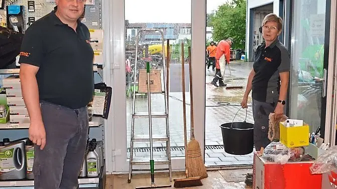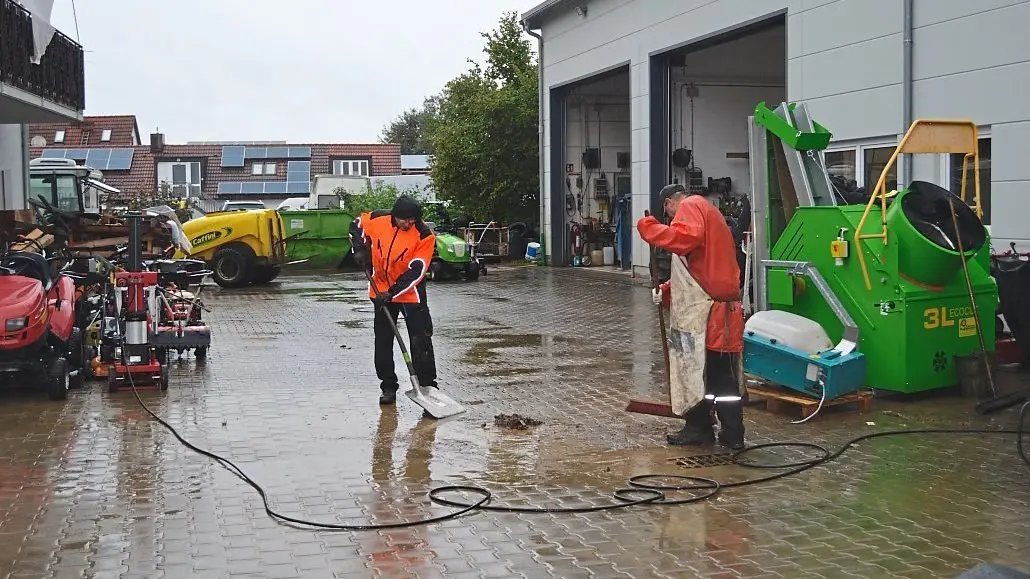 Im Landmaschinenhandel von Thomas Rossmann stand hier das Wasser etwa zehn Zentimeter in den Geschäftsräumen, doch schon am Sonntag war er mit seinen Mitarbeitern und der Familie am Werk, um den Schmutz zu beseitigen. Ab Dienstag hat der Betrieb wieder regulär geöffnet. Am Samstagnachmittag freilich bot sich Rossmann und seinen Nachbarn noch ein ganz anderes Bild: Hier hatte sich die Mainburger Straße in einen breiten Fluss verwandelt.