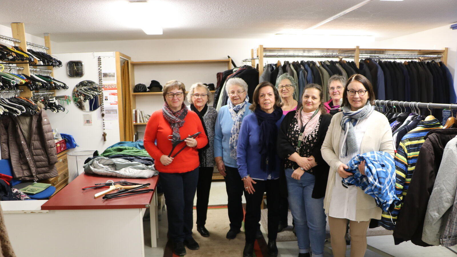 Das ehrenamtlich tätige Kleiderkammer-Team um Susanne Weiß (3. v. r.) ist auf der Suche nach einer neuen Bleibe, sonst droht der sozialen Einrichtung das Aus.