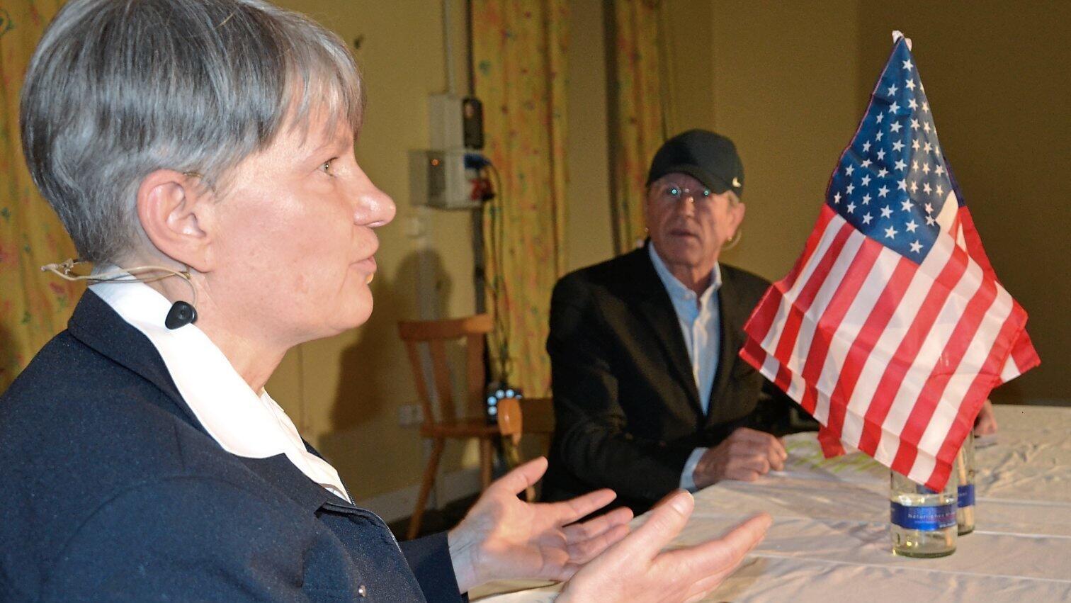 In einem Sketch setzten sich eine Vertreterin des Logistikentwicklers Panattoni (Anett Krietzch) und Amazon-Boss Jeff Bezos (Dieter Attenberger) mit dem geplanten Projekt und den Widerständen dagegen auseinander.